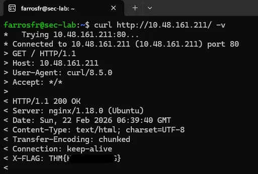 When a web server responds to a request, it returns HTTP headers that can expose sensitive information about the underlying technologies, such as the web server software (e.g., NGINX) or programming language versions (e.g., PHP). Running a verbose HTTP request (like a curl -v command) allows you to inspect these headers for potential vulnerabilities.