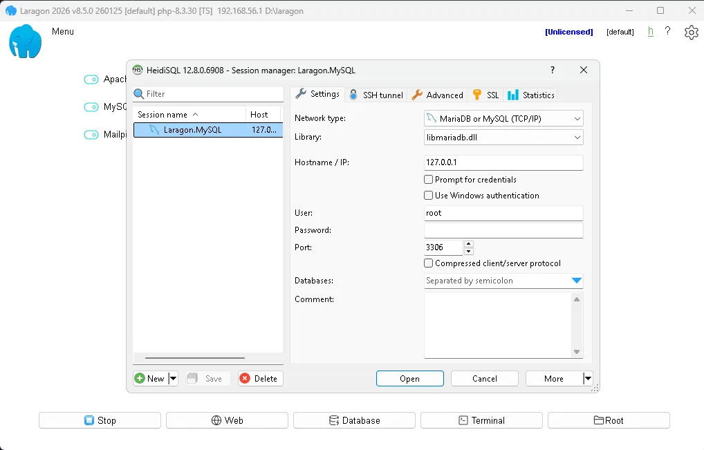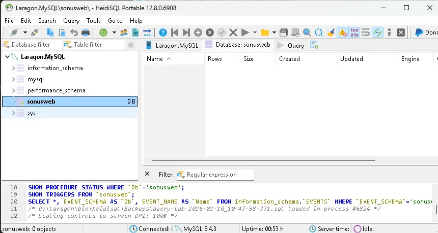 C:\laragon\www\sonusweb.Creating a MySQL database named