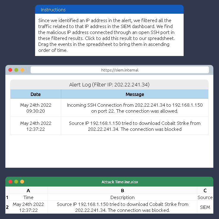 Timeline Creation: After collecting and preserving evidence, creating a timeline of events is essential for understanding the sequence of actions during an incident. This timeline helps provide clarity and context to the investigation.