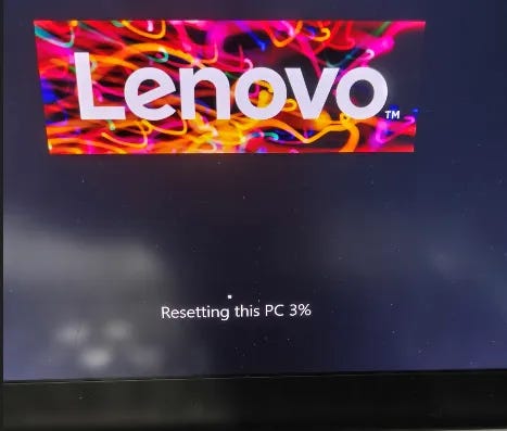 Shortly after confirming, the screen showed the Lenovo logo with the word: