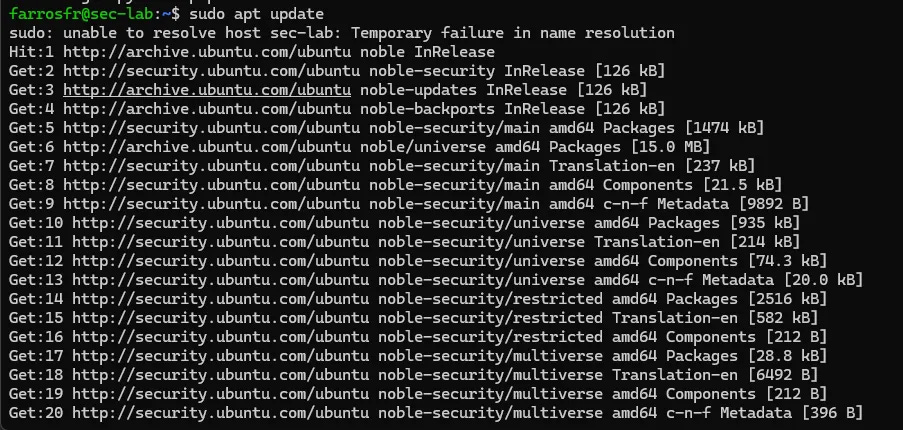 sudo: unable to resolve host sec-lab: Temporary failure in name resolution