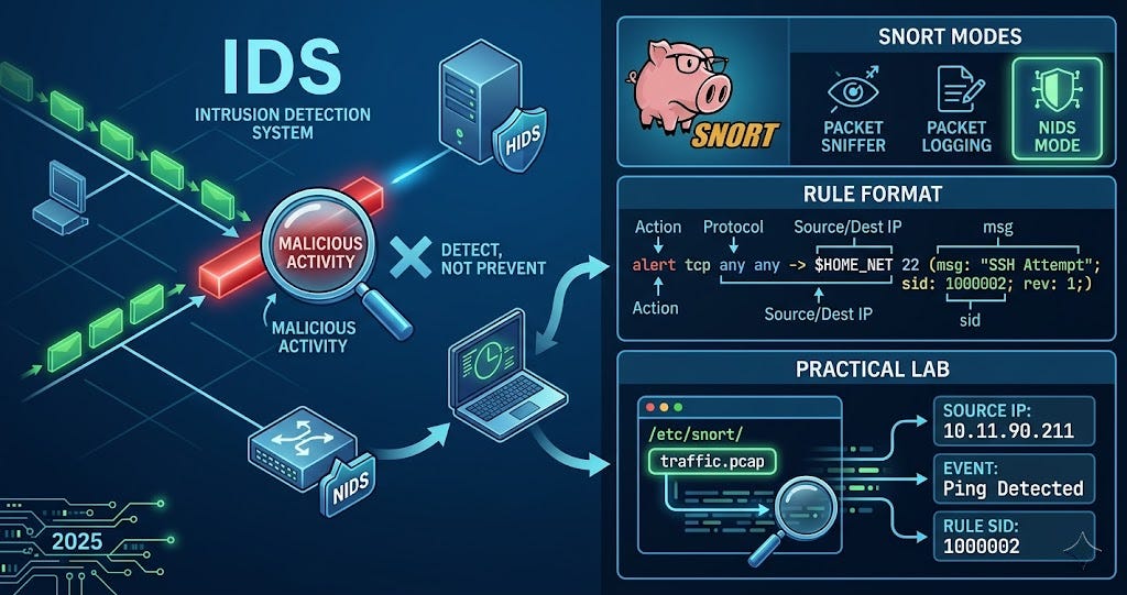 Here i want to share about my write-up for the room IDS Fundamentals (Premium Room), learn the fundamentals of IDS, along with the experience of working with Snort. I wrote this in 2025 and hope it is useful for learning about cybersecurity.