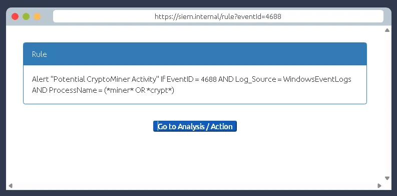 Examine the rule and the suspicious process; which term matched the rule that caused the alert?