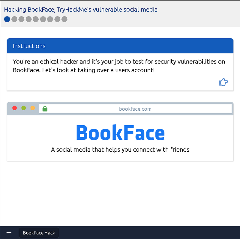 Click the green “View Site” button above and learn how to hack BookFace, TryHackMe’s vulnerable social media site.