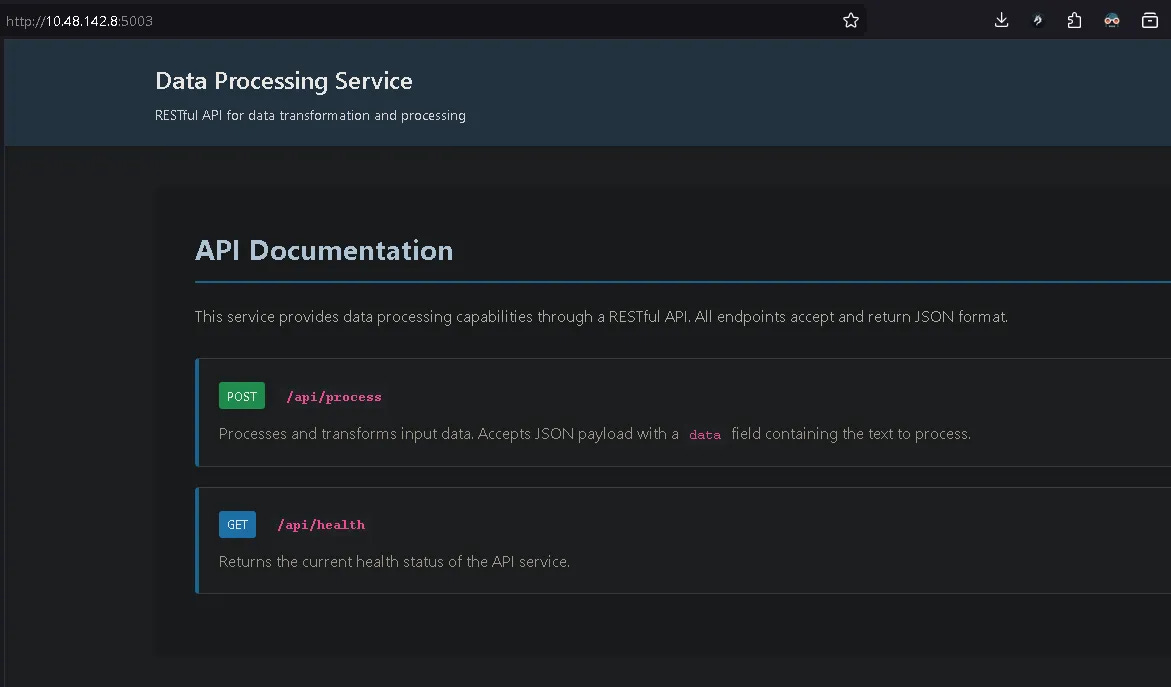 The service exposed two endpoints: