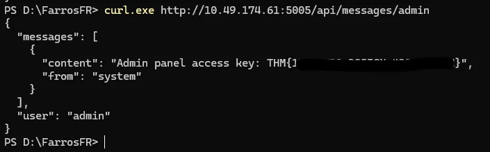 curl http://IP_MACHINE:5005/api/messages/admin