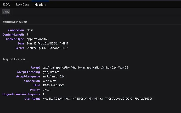 This confirmed that the backend API was accessible without authentication.