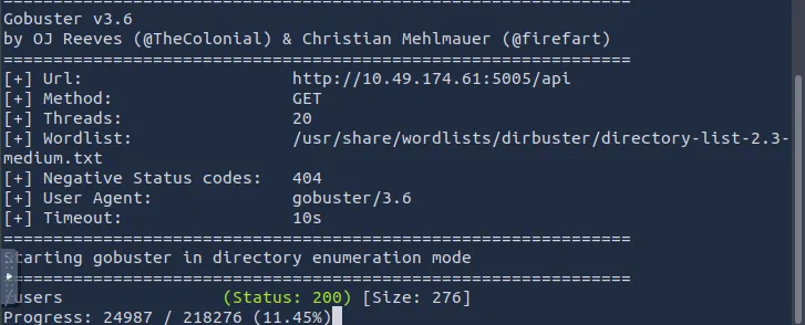 Since the scan was slow, we targeted the /api path directly: