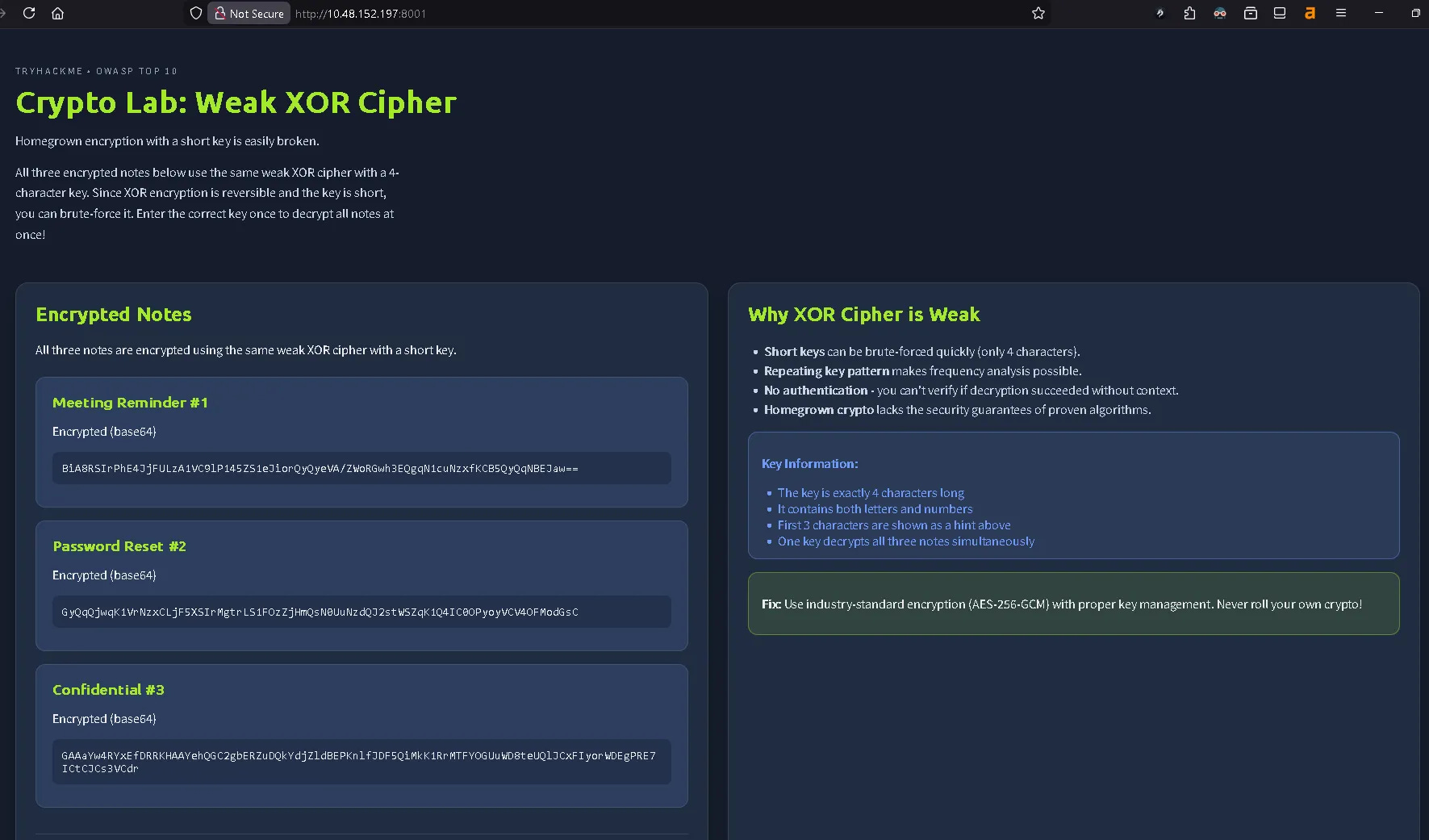 Here we can open the page called Crypto Lab: Weak XOR Cipher. Then we can use CyberChef to decrypt the codes.
