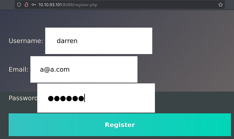 Try to log in as ‘ darren’.