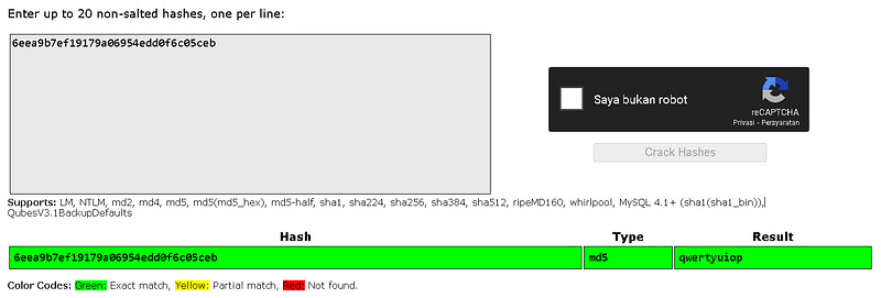 Open the website crackstation.net, then enter the hash and click the ‘Crack Hashes’ button to decrypt the password.