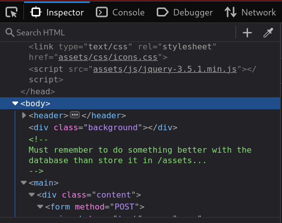 We can view the source code on the web by jumping into the developer tools (Ctrl+Shift+I in Mozilla) to inspect the code.