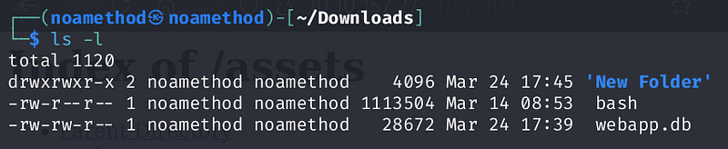 Download the database from the website, then type ls -l in the Downloads directory.