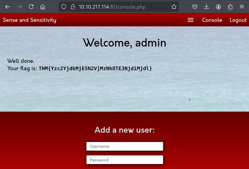 We can try logging in after that and search for the flag