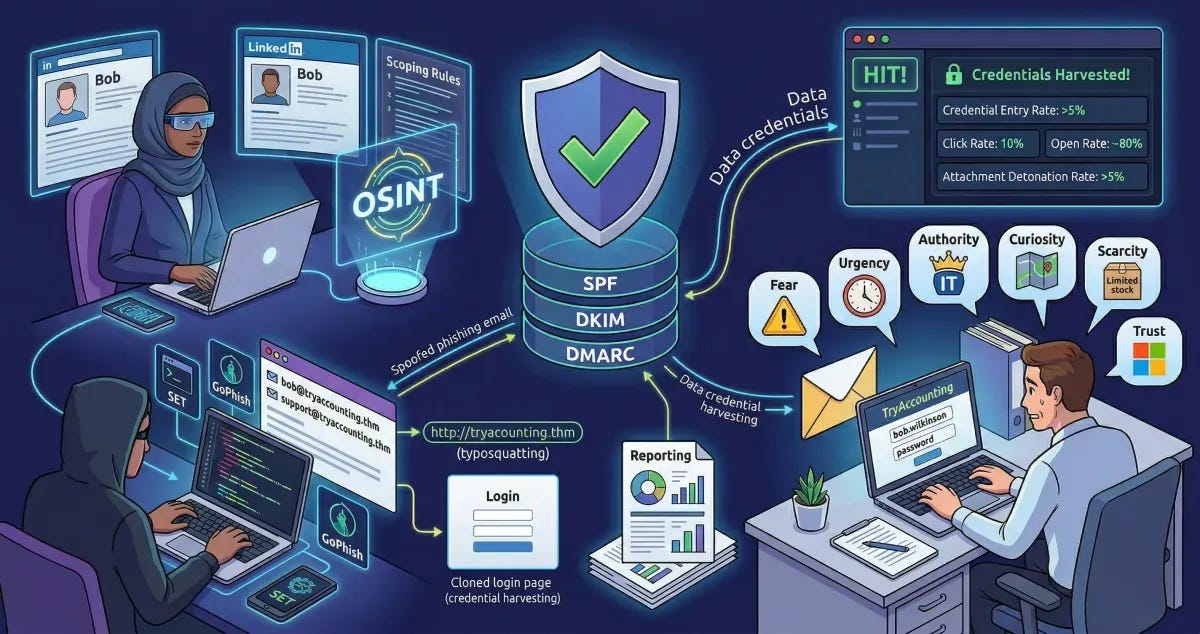 Complete walkthrough for TryHackme room. Explore phishing techniques and tools for penetration testing.