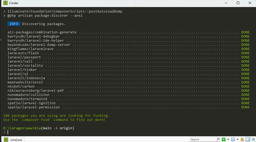 If your local environment (like a default Laragon setup) does not have Redis installed, you might see the following error during package:discover: