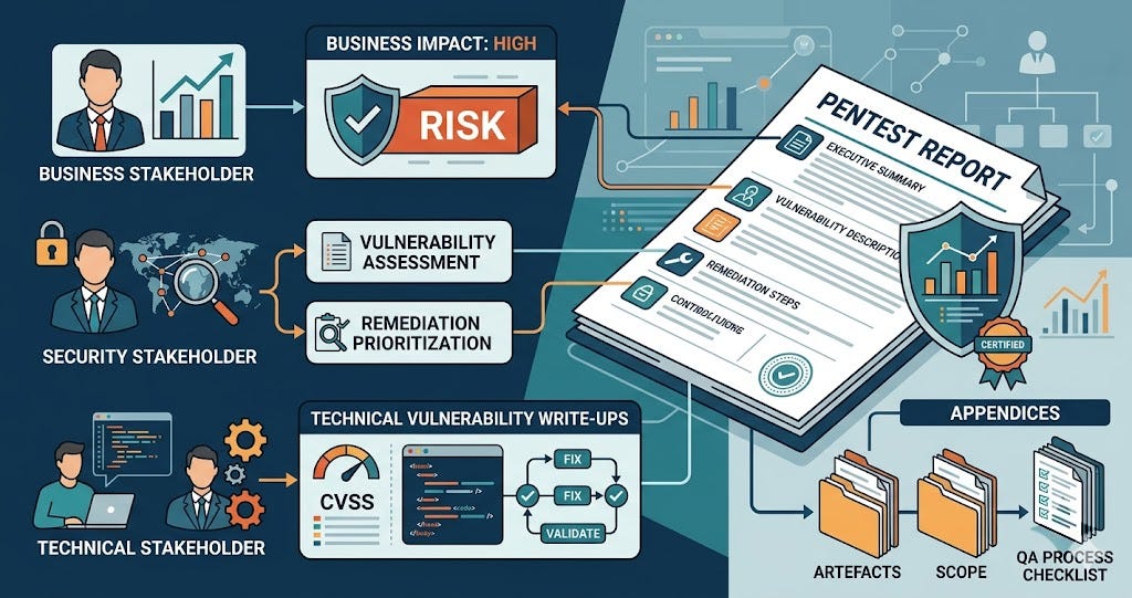 Here is my article on the walkthrough of a free room: Writing Pentest Reports. Learn how to write professional pentesting reports that communicate risk to business stakeholders. I wrote this in 2025 and hope it is useful for learning about writing pentest reports.